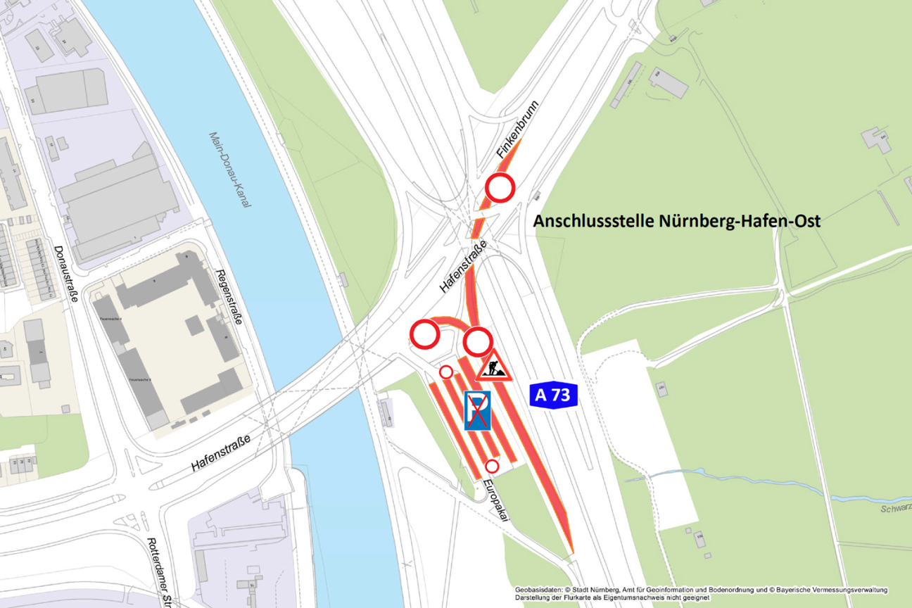 Hafenbrücken (2/2026) – Auffahrtsrampe zur A73 Richtung Feucht ab 16.02.2026 gesperrt